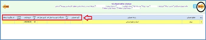- صفحه مشخصات مقاطع تحصیلی پایه: اطلاعات به صورت اتوماتیک بارگذاری شده در صورتی که برخی اطلاعات نوشته نشده و یا صحیح نمیباشد با انتخاب گزینه "ویرایش" اطلاعات خود را تکمیل نمایید و موارد ذیل را بررسی نموده و در صورت ثبت بادقت وارد نمایید: