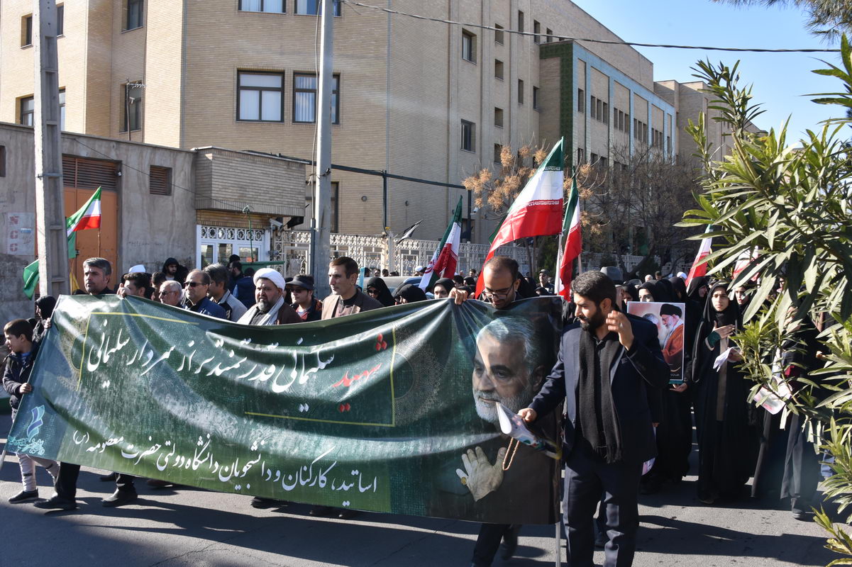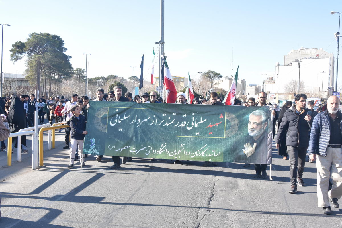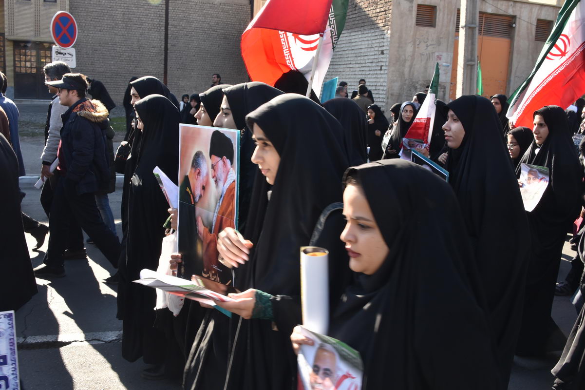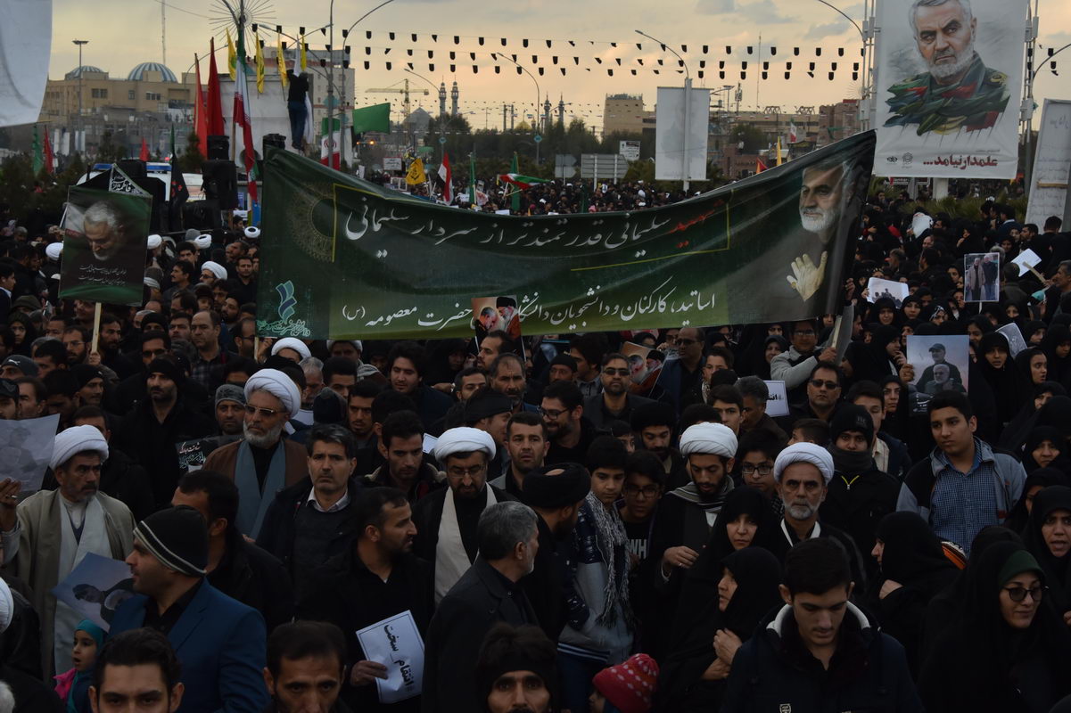 98/10/16- اساتید، دانشجویان و کارکنان دانشگاه حضرت معصومه (س) در مراسم تشییع پیکر پاک سردار شهید قاسم سلیمانی و همرزمانش همراه با خیل جمعیت خونخواهان شهدا در مسیر حرم حضرت معصومه (س) تا مسجد مقدس جمکران شرکت کردند.